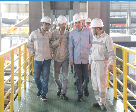 On the afternoon of July 8, XIANG Guangda, the Chairman of TSINGSHAN’s board of directors, and his delegation visited IMIP for guiding the work. They got a comprehensive understanding of the production status of GCNS Steel Making Division and Hot Rolling Division, and the construction situation of ITSS Steel Making Division. WU Huadi, the project director of IMIP, accompanied them entirely.