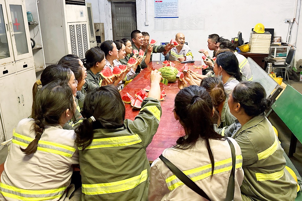 盛夏时节,烈日炎炎。连日来,持续高温“烤”验着奋斗在一线的职工们,为切实维护广大职工的健康和安全权益,近日,广东广青金属科技有限公司开展了“夏日送清凉”慰问活动,为高温酷暑仍坚守在生产一线的广大职工送去“夏日清凉”,把公司的关爱送到广大职工的心坎上。