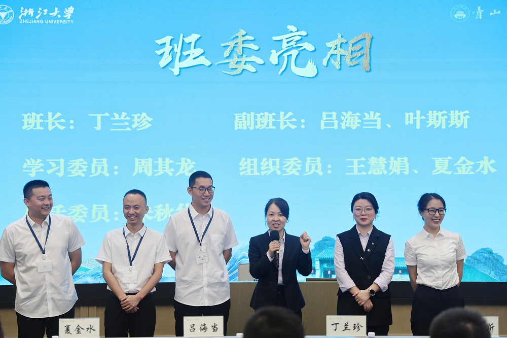 为增强班级内部的凝聚力和向心力,开学典礼特设班委亮相环节。班长丁兰珍表示“不辜负,知感恩”,学员相聚不易,要珍惜当下,感恩相遇,并对青山国际商学院(筹)提供的赋能培训机会表示感谢。副班长叶斯斯号召“每个人做自己的班委”,群策群力,共同创建有成效、有特色的班级。